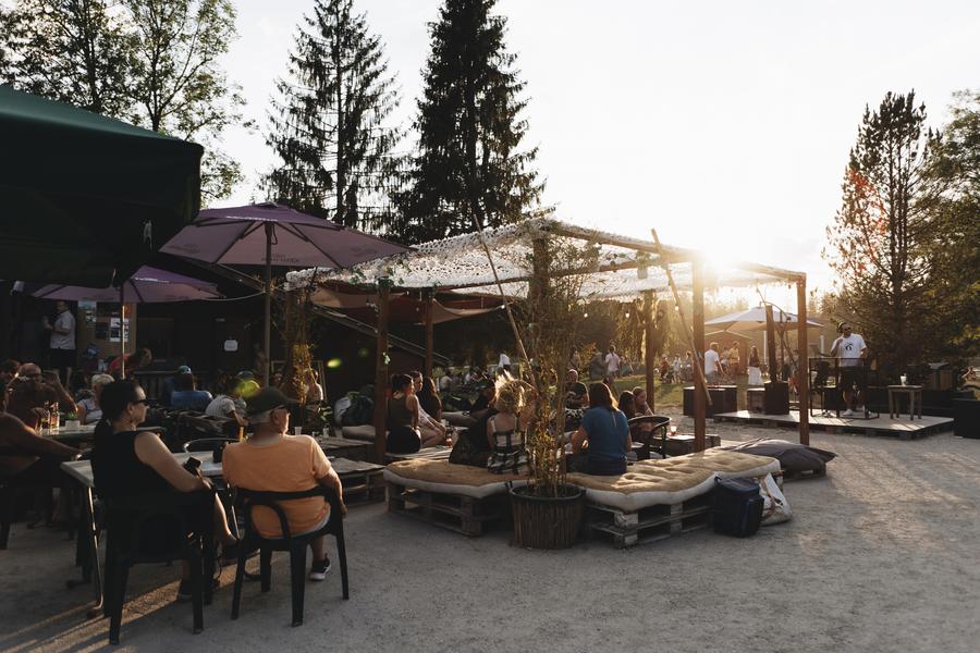 Terrain de pétanque en plein air au coeur de la base de loisirs.