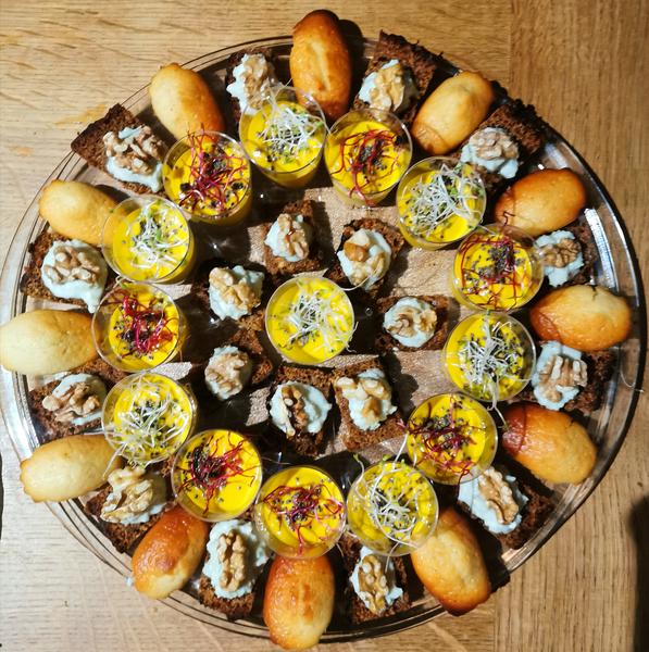 Also, if you would like me to take care of your aperitif buffets, vegetarian or vegan meals, breakfasts, snacks, etc., I am here to listen to your needs.