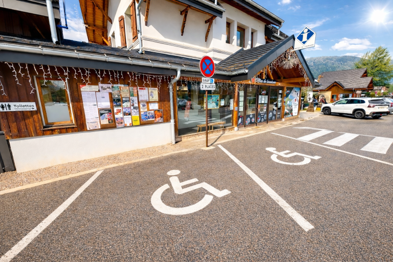 Profitez de 2 places de parking PMR devant l’entrée de l’Office de Tourisme et 1 place de parking PMR à l’arrière du bâtiment.