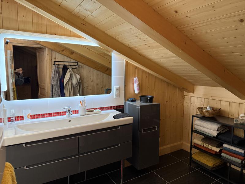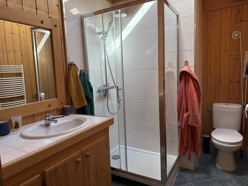 A l'étage : une suite parentale avec balcon, lit de 160cm, salle de douche et dressing. Une chambre avec lit de 140cm et mezzanine avec lit de 90cm. Une salle de douche avec toilettes. Une chambre avec 2 lits de 90cm et mezzanine avec 1 lit de 90cm. Parking privatif et garage avec accès limité (skis ou vélos). Nombreux rangements. Linge de lit et de toilette non fournis.