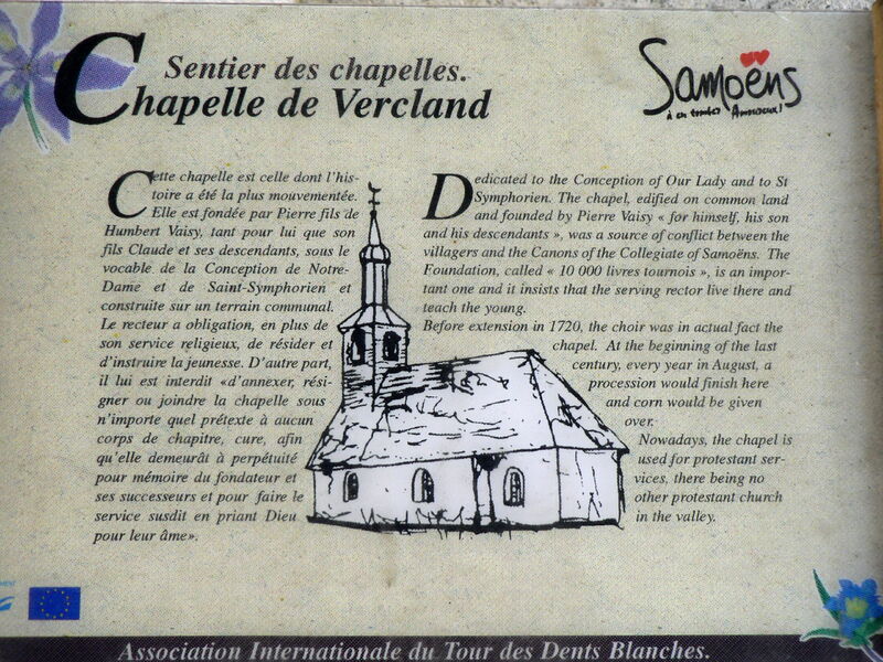 De kapel van het gehucht Vercland in Samoëns werd in 1626 gesticht op gemeenschappelijke grond, door een plaatselijke inwoner, Pierre Vaisy: "zowel voor hem als voor zijn zoon Claude en zijn nakomelingen". Het is gewijd aan de conceptie van de Notre-Dame en aan Saint-Symphorien. Het gehucht van Verclands is gewijd aan de Ontstaan van de Notre-Dame en aan Sint-Symforienus. Het gehucht van Vercland is een historische mijlpaal van de steenhouwers van de Haute-Savoie en tevens de geboorteplaats van de eerste skiliften. Dit gehucht heeft een geanimeerde geschiedenis, net als zijn kapel. Dit religieuze gebouw is de bron geweest van conflicten en rechtszaken tussen de inwoners van het dorp en de monniken van de collegiale kerk in Samoëns.