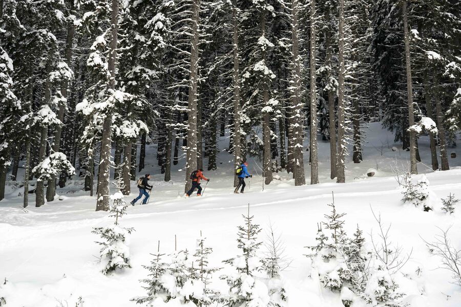 Start vanaf de Kédeuze télécabine, volg de Combe piste aan de rechterzijde vervolgens op theright, volg dan de sneeuwschoentrail tot L'Anfionne restaurant. De aankomst is op de top van de Kédeuze telecabine. Volg het bos.